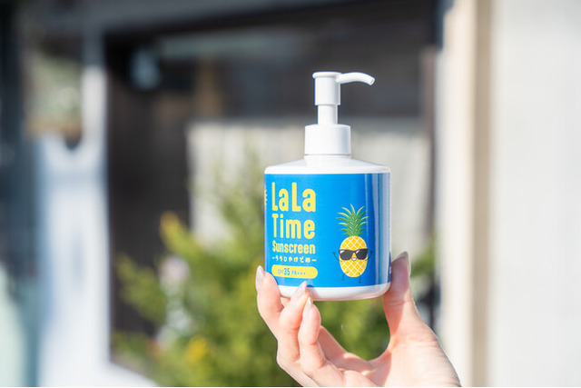 かわいいパイナップル(ララちゃん)が目印の日焼け止め【LaLa Time】ララタイムは、子どもたちも覚えやすいため、自分たちで「こうえんのまえはララタイムだよ!」と自ら発するでしょう。