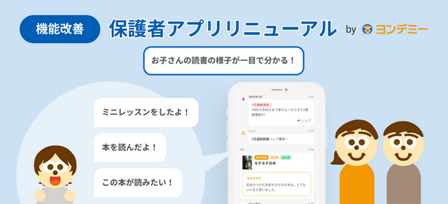 子どもが読書にハマるオンライン習い事「ヨンデミー」を運営する株式会社Yondemy(本社:東京都中央区、代表取締役:笹沼 颯太)は、2025年3月10日(月)に、保護者向けアプリのサービスをフルリニューアルしたことをお知らせいたします。子どもの成長や成果を視覚的に見える化し、お子さんの成長を振り返ることができるようアップデートを行いました。