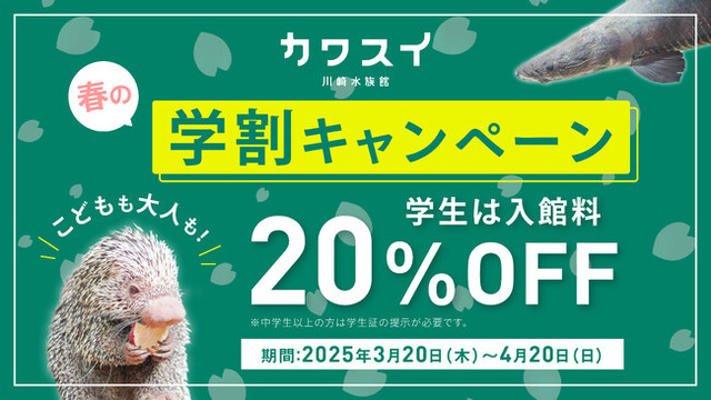 春休みは、お得にカワスイを楽しもう!学生&幼児(4歳以上)を対象に入館料が20%OFFになるキャンペーンを実施します。