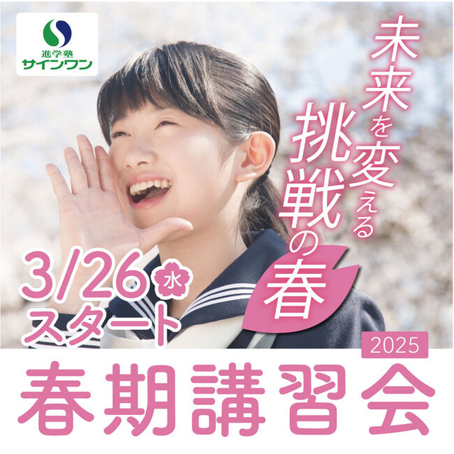 株式会社 学研ホールディングス(東京・品川/代表取締役社長:宮原博昭)のグループ会社、株式会社 学研スタディエ(さいたま市/代表取締役社長:亀谷眞宏)の展開する、埼玉県の進学塾サインワンでは、2025年3月26日より、小学生・中学生・高校生対象の「春期講習会」を開講します。