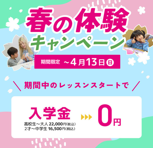 期間中のご入学とレッスンスタートで、入学金が0円になるお得なキャンペーンです。