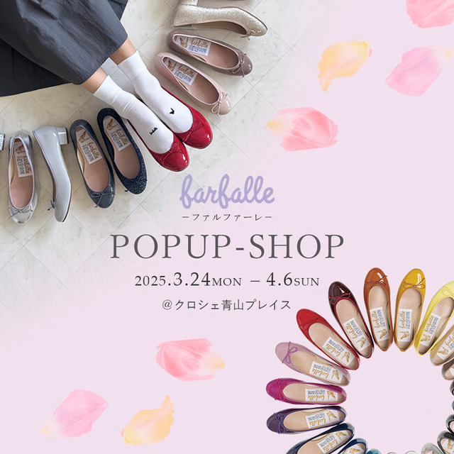 「ここち良さを、あたらしい視点から」を企業理念に掲げるレディースアパレルの株式会社クロシェ(代表取締役:沼部 健、本社:神戸市中央区=以下、クロシェ)は、自社のバレエシューズブランド【farfalle/ファルファーレ】のPOP UPイベントを、東京・南青山のプレスルーム兼ショールーム「クロシェ青山プレイス」で2025年3月24日より4月6日まで行います。