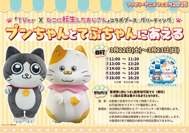 民放公式テレビ配信サービス「TVer(ティーバー)」は、2025年3月22日(土)と3月23日(日)に開催される、「ファミリーアニメフェスタ2025」にTVアニメ『ねこに転生したおじさん』(以下『ねこおじ』)とのコラボブースを出展します。
