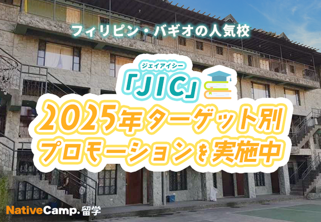このたび、ネイティブキャンプ留学は、フィリピン・バギオの人気校「JIC」にて、2025年ターゲット別 プロモーションを実施いたします。