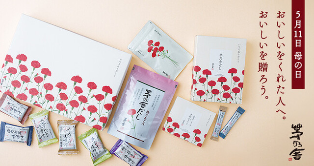 母の日限定、カーネーション柄デザインの「茅乃舎だし」を始め、お湯を注ぐだけでお召し上がりいただけるフリーズドライの味噌汁・だしスープなど、お母さんへの感謝の気持ちを込めた商品をラインナップいたしました。2025年の母の日は、5月11日(日)。今年の母の日は、お母さんご自身の食生活を気にかけてみませんか。離れて暮らすお母さんに贈ってみたり、久しぶりに帰って料理を振る舞ってみたり。茅乃舎では、さまざまなシーンでお役立ていただける商品をご用意しております。