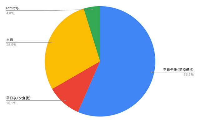 習い事の希望時間帯として「平日午後(学校帰り)」が最も多いことがわかりました。