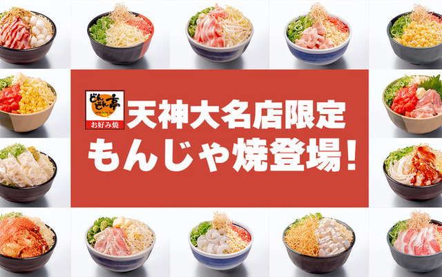 天神大名店限定メニューが登場!どんどん亭ではもんじゃ焼きもロングセラーメニューのひとつ。お好み焼きとともに進化を続け、素材と出汁にこだわった自慢の一品となっています。この度、より多くの方にこの味を知っていただく為、天神大名店限定のもんじゃ焼きを開発いたしました。