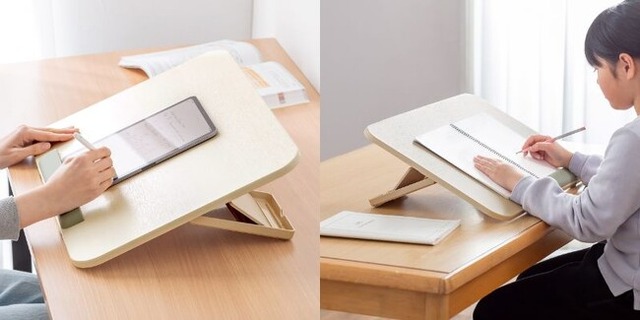 タブレットを立てて置くことで、オンライン学習などでタブレットの画面を見ながら手元でノートをとることもできます。