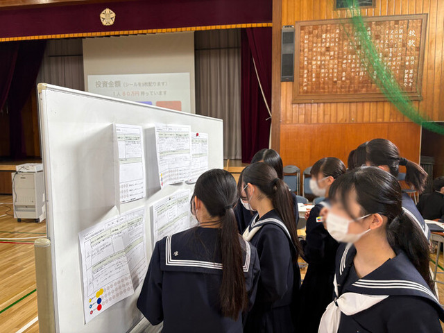 チームに分かれ、自身が会社の社員であるという設定で自社の魅力とこれからの計画をまとめ、クラスメイトにプレゼンをして投資を募る