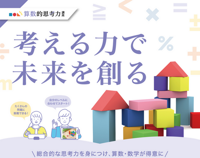 『すべての教育現場の指導効果最大化』と『受講者の願った未来を実現する力の提供』を軸に、 今回は算数的思考力講座を通じて、子どもたちが算数・数学を楽しみながら学び、将来の可能性を広げていくことを支援してまいります。