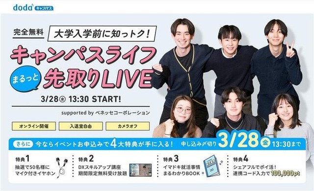 イベントタイトル:「大学入学前に知っトク!キャンパスライフまるっと先取りLIVE 」