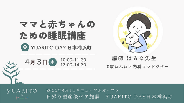 内科医で、ご自身も2人のお子さんを育てる、はるな先生にご登壇いただき、0歳児のねんね講座を開催いただきます。