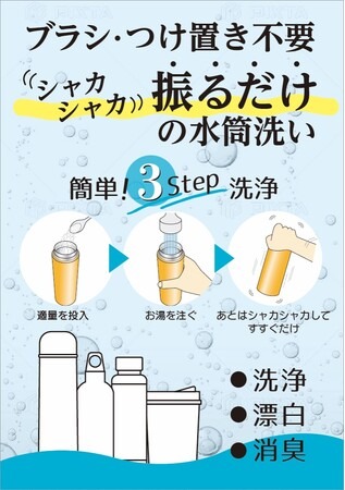 本商品を用いることで毎日の水筒掃除の負担を軽減し衛生的にも安心です。