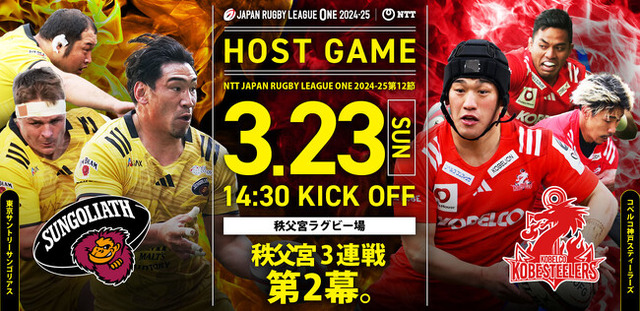 東京サントリーサンゴリアス(サントリーホールディングス(株)スポーツ事業部)は、2025年3月23日(日)に秩父宮ラグビー場にて開催される「NTTジャパンラグビー リーグワン 2024-25 ディビジョン1 第12節 交流戦 対コベルコ神戸スティーラーズ戦」において、トランスコスモス株式会社(本社:東京都豊島区、代表取締役共同社長:牟田 正明、神谷 健志)の冠試合「トランスコスモス・デー」を開催いたします。