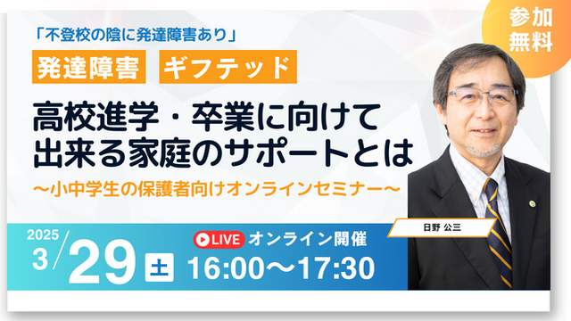 2025年4月に開校予定の「EuLa通信制中等部」では、小中学生の保護者を対象に、「不登校の陰に発達障害あり」をテーマとしたオンラインセミナーを開催します。
