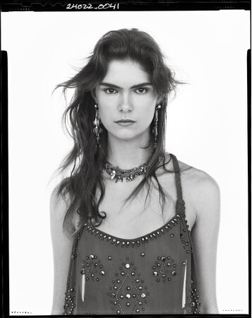 ボヘミアンと未来が交差するようなスタイルを実現するグラディエーターサンダル、彫刻的なフォルムのバッグ、流れるようなシルエットでありながら構築的なドレス、そして抽象的でアヴァンギャルドな装飾を施した重ね付けのジュエリーが登場。風に揺れるベルト付きのサマードレスは繊細なフローラル柄で、スポーツウェアを思わせる意外性のあるネックラインを採用しています。ストラップ付きのブラトップ、贅沢なプリーツドレス、テーラード仕立てのウエストコート、マイクロショーツ、そしてボリューム感のあるフルスリーブのブラウスが、アースカラーを基調としたナチュラルで上品なパレットで展開。さらに、染色による奥行きのある色彩と、時を超えて愛されるペイズリー柄が、コレクションに豊かな表情を添えます。