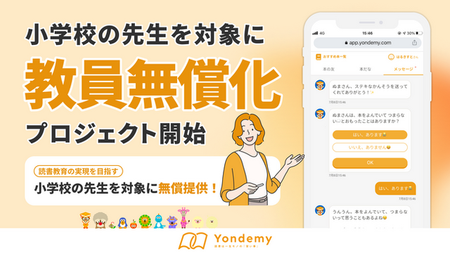 子どもが読書にハマるオンライン習い事「ヨンデミー」を運営する株式会社Yondemy(本社:東京都中央区、代表取締役:笹沼 颯太)は、2025年3月22日(土)より、小学校の先生を対象に「ヨンデミー」の無償提供を開始することをお知らせいたします。