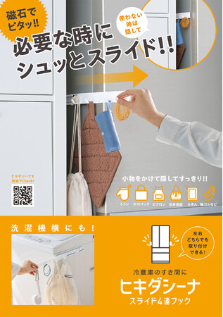 株式会社コジット(本社:大阪府大阪市、代表取締役:久保慎一郎)は、冷蔵庫まわりや洗濯機まわりの小物を隠してすっきり収納する「冷蔵庫横のすき間スライド4連フック ヒキダシーナ」を2025年3月21日(金)より全国発売します。