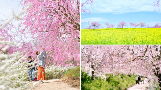 約30,000平方メートル の世羅高原の丘を桜や春の花が華やかに彩ります。穏やかに揺れるしだれ桜を慈しみながら、心弾むひとときをお過ごしください。