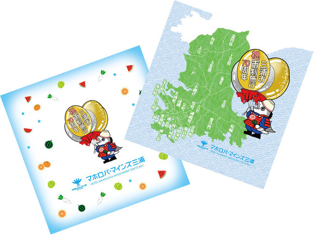 ひとつは三浦市の町名を記したローカル感溢れる地図、もうひとつは大根とキャベツ、スイカ、みかんといった三浦市の名産を可愛らしく散りばめたデザインで、いずれも三浦市滞在の楽しい思い出のひとつとなることでしょう。