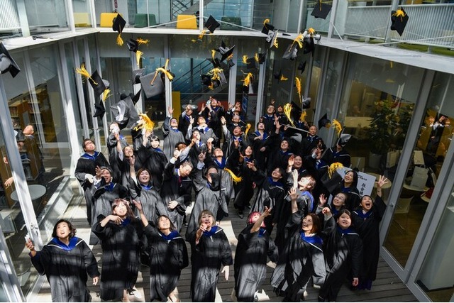 「本日、多くの皆さんが本学の全課程を修了し、修士学位を取得されました。誠におめでとうございます。教職員を代表して、心よりお祝い申し上げます。皆さんが本業と両立しながら、専門領域の修士課程を修了するには、大変な努力が必要でした。その努力が実を結び、学位記を手にされたことを誇りに思い、私たちも深く敬意を表します。この2年間、世界は大きな変革期にありました。