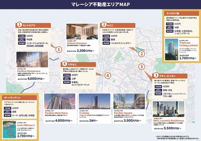 今回のマレーシア不動産エリアマップは、2025年2月に公開した「カンボジア・プノンペン不動産エリアマップ」に続き、マレーシアの不動産情報を可視化したマップです。首都クアラルンプール中心地のラグジュアリー物件をはじめ、国内屈指のリゾート地・ランカウイ島のプロジェクトや、クアラルンプール近郊のリゾート物件などを網羅しています。