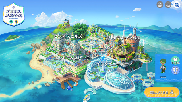 オリナスメタバースは、きづなPARKが取り組むメタバース空間における企業と学生のマッチングサービスです。例えば、インターンシップをしたい学生と、学生を受け入れたい企業の対話の場として、また今回のように就職活動を控える学生向けの合同企業説明会にも活用できます。