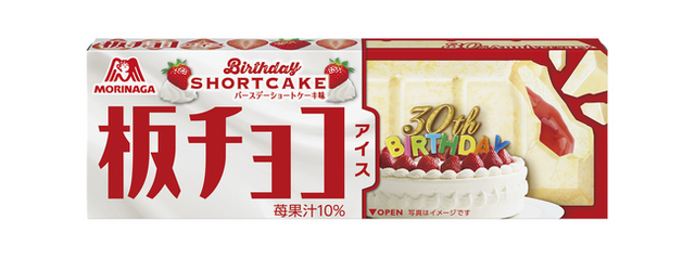 森永製菓株式会社(東京都港区芝浦、代表取締役社長・太田 栄二郎)は、1995年発売の「板チョコアイス」の誕生30周年を記念して、バースデーケーキをイメージした「板チョコアイス<バースデーショートケーキ味>」を5月26日(月)より期間限定で発売いたします。「板チョコアイス」は、パキッとした食感の分厚いチョコと、すっきりとした味わいのアイスの組合せで、たっぷりのチョコを思いっきり味わうことができる板チョコ型のアイスです。特徴的なパキッと食感が好評で、ブランド全体で直近5年間で売上233%伸長※と非常に好調に推移しています。