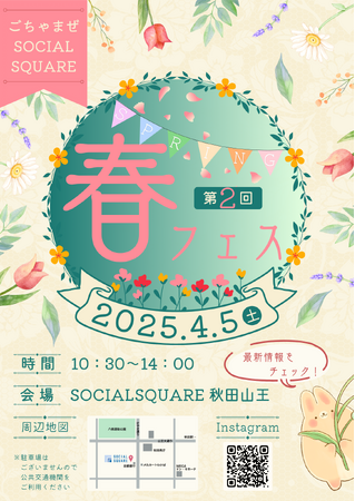 SOCIALSQUARE 秋田山王は、おかげさまでオープンから2周年を迎えました。これまで支えてくださった皆様への感謝の気持ちを込めて、本年も「春フェス」を開催いたします。春の訪れとともに、皆様に楽しんでいただけるイベントをご用意しておりますので、ぜひお越しください。