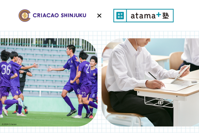 atama plus株式会社(本社:東京都文京区、代表取締役CEO:稲田 大輔、以下 atama plus)は、AIを活用し個別最適な学びを届ける「進学個別 atama+塾(以下atama+塾)」のフランチャイズに、JFL所属のサッカークラブ「Criacao Shinjuku(以下クリアソン新宿)」を運営する株式会社Criacao(本社:東京都新宿区、代表取締役社長CEO:丸山和大)が加盟し、東京都新宿区に中井校を開校することをお知らせします。