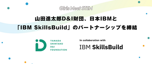 公益財団法人山田進太郎D&I財団は、日本アイ・ビー・エム株式会社(以下、日本IBM)とパートナーシップを締結し、AIを含めたIT分野を学べる無償のオンライン学習プログラム「IBM SkillsBuild」を全国の中高生女子および学校に提供します。当財団が運営する中高生女子向けのSTEM(理系)体験プログラム「Girls Meet STEM」の経験から、STEM領域の体験を提供することが中高生女子のSTEMへの関心向上に寄与することがわかってきました。そこで、日本IBMとのパートナーシップにより、3月26日より個人・学校単位でのIBM SkillsBuildの利用申し込みを開始し、中高生女子が時間や地理的な制約に関わらずSTEM領域の学びに触れる機会を広げていきます。
