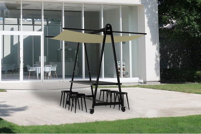 日除け付き屋外用テーブル「MeetBooth」