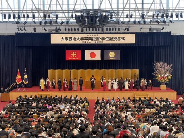 卒業式の最後には大阪芸術大学管弦楽団による大阪芸術大学応援歌「いま君は美しい」の演奏が行われ、会場は温かい祝福のムードに包まれました。卒業生たちは学んできた知識や技術を生かし、それぞれの夢に向かって歩みを進めていきます。