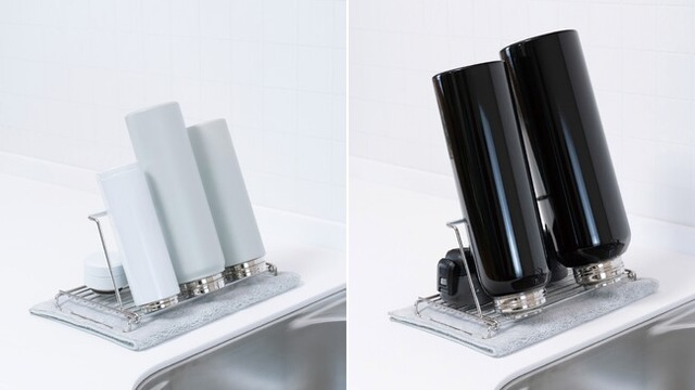 3.ボトルの後ろにキャップやパッキンなどを置いて水切りできる