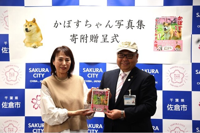 世界の柴犬・かぼすちゃんの飼い主である佐藤さんから、佐倉市(市長:西田三十五)へ写真集の寄附があり、贈呈式を行いました。
