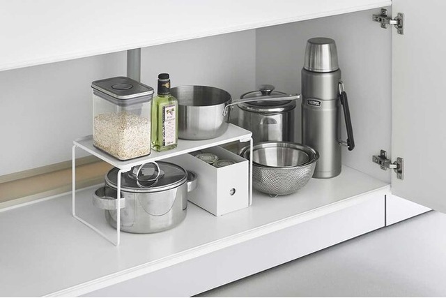 キッチンや洗面所のシンク下のスペースを有効活用!積み重ねても並べても使える棚。