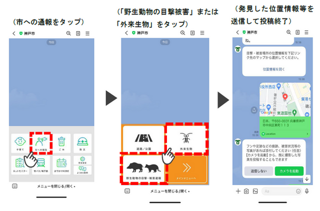 神戸市では、従来電話やメールにてイノシシ等の野生動物やクビアカツヤカミキリ等の外来生物の目撃情報を受け付けてきましたが、2025年4月1日からは、多くの人が利用するLINEを活用した通報受付を開始します。通報いただいた情報は、市の有害鳥獣・特定外来生物対策に活用します。
