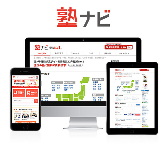 「塾ナビ」は、「塾選びなら塾ナビ」をコンセプトに2007年11月に提供を開始しました。