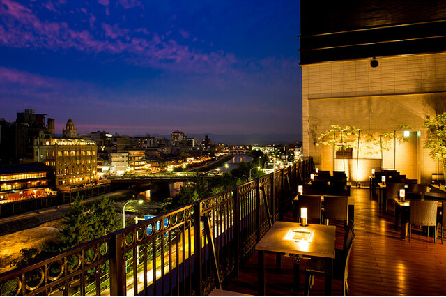 天壇祇園本店屋上(鴨川スカイBBQガーデン)の景色。鴨川を一望できます。