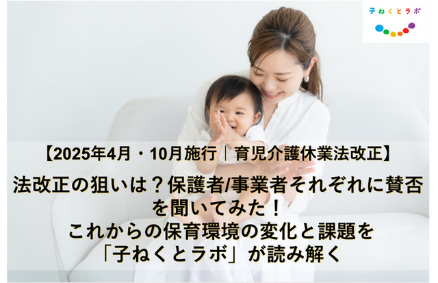 2025年4月・10月に「育児介護休業法改正」が施行される(※1)と発表がありました。法改正のポイントや、法改正に伴う保育環境の変化や課題について、株式会社明日香(本社:東京都文京区、代表取締役:萩野 吉俗、https://www.g-asuka.co.jp/index.htm)が運営する子どもと未来、そしてすべての人がConnect(繋がり、結びつき)する保育研究プロジェクト「子ねくとラボ(https://konnect-labo.jp/)」所長の末廣剛が見解レポートを発表しました。
