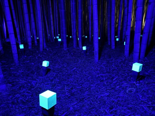 【蓄光ユニット「ナイトコンシェルジュ」が竹林に点在】