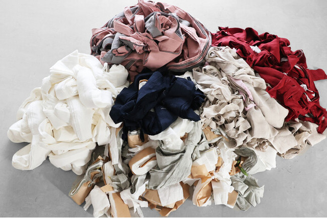 現在、「HUIS(ハウス)」では、年間40,000着以上の製品を生産しています。洋服の生産過程では、裁断クズや仕上がり確認のためのハギレ生地などが発生し、それらは通常廃棄物となってしまいます。