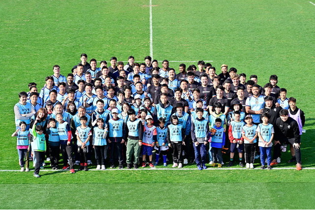 当日は、全国の多数の応募から選ばれた小学1~6年生の子どもたち17名が参加。チームラッピングバスによる送迎から始まり、リーグワン所属選手が指導するラグビー体験(練習)のほか、浦安D-Rocksの選手が普段食べている食事を選手とともに一緒にいただく食事会、実際の試合が行われる会場でのアナウンスや、インタビュー体験、試合中にはボールパーソン体験など、普段は経験できないプロのセカイを体験できる貴重なプログラムを実施しました。