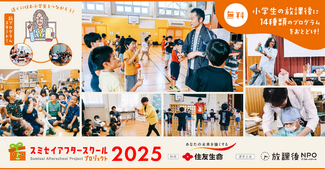 「日本中の放課後を、ゴールデンタイムに。」をミッションに活動する 特定非営利活動法人 放課後NPOアフタースクール(以下「放課後NPOアフタースクール」)は、住友生命保険相互会社(以下「住友生命」)と協働で実施する「スミセイアフタースクールプログラム(後援:文部科学省)」の2025年度実施団体を募集します。
