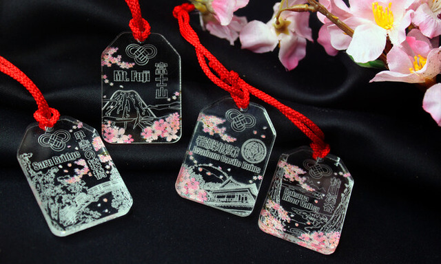この春限定で「アクガチャ お守り風アクセサリー 大月観光名所 桜特別版」が登場!コロナ禍以降に不要となったアクリル仕切り板をアップサイクルして作られた、環境に優しいお守り風アクセサリーです。富士山や岩殿城跡など大月の観光名所をモチーフにしたデザインが特徴です。特に、桜をあしらった春限定版は、ここでしか手に入らない特別な一品。