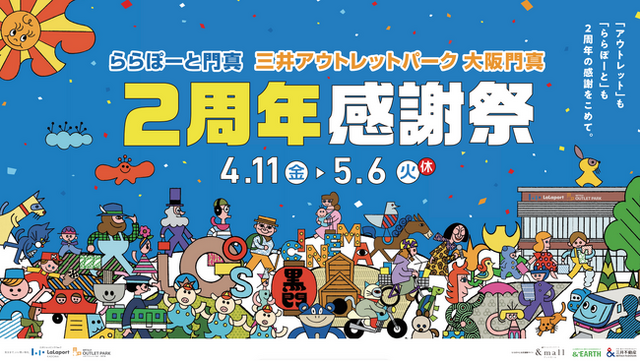 三井不動産商業マネジメント株式会社(本社:東京都中央区、代表取締役社長:大林 修) は、2025年4月17日(木)に「ららぽーと門真・三井アウトレットパーク 大阪門真」 (所在:大阪府門真市、以下「ららぽーと門真」)が開業2周年を迎えることを記念して、2025年4月11日(金)から5月6日(火・休)の期間、「2周年感謝祭」を開催します。