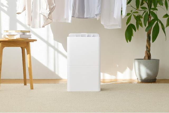 本製品は、1日あたり6.3L※1の除湿性能でお部屋や洗濯物の湿気を取り除き、衣類をすばやく乾燥します。さらに、空気清浄機能を搭載しており、内部の集じんフィルターが、花粉やハウスダストを約95%※2キャッチし空気をきれいにします。ヒーターレスのコンプレッサー式なので、1時間あたり約5.3円※3と電気代を抑えて毎日気兼ねなく使用することができます。除湿・衣類乾燥、空気清浄機能があることにより、収納不要で年中活用できるからこそ、シンプルな操作性と佇まいにもこだわりました。