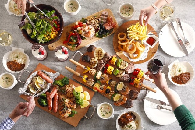 国産牛のジューシーな旨み、パリッと香ばしいグリルソーセージ、そしてハーブが香るふんわりとしたチキンを乗せた「ミートプレート」や、プリッとした食感の海老や濃厚な旨みあふれる帆立貝、そしてふっくら柔らかく蒸し上げた真鯛のホイル包み焼きを乗せた「シーフードプレート」などをグリルコンロで焼いて愉しむ、『ガーデンバーベキュー』が5日間限定でオープン。