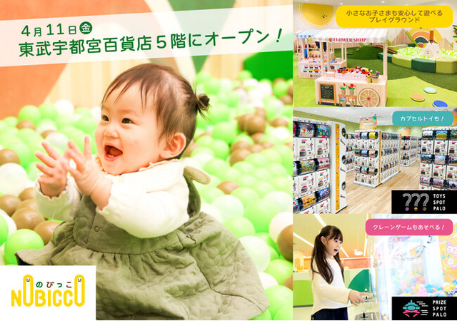 株式会社イオンファンタジー(本社:千葉県千葉市、代表取締役社長:藤原徳也、以下、当社)は、4月11日(金)栃木県宇都宮市の東武宇都宮百貨店5階に、クレーンゲーム専門店「PRIZE SPOT PALO 東武宇都宮店」、カプセルトイ専門店「TOYS SPOT PALO 東武宇都宮店」、赤ちゃんから遊べるプレイグラウンド「のびっこ」の3業態を同時グランドオープンします。