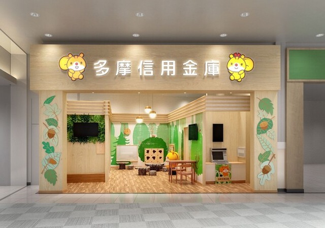新店舗は多摩信用金庫のオリジナルキャラクター RISURUの森をモチーフにした北欧風の親しみやすい雰囲気で、お子さま連れでも安心してご利用いただけるキッズスペースを設置。ご家族でリラックスしながら、お金のご相談ができる新しいスタイルの店舗へと生まれ変わります。